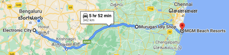 Route we took: If you are travelling from Bangalore to Mahabalipuram, it is better to start your journey through the Electronic City to take NH 48 that goes through Hosur – Krishnagiri – Vellore, as it has the best roads to drive, taking lesser time (6-7 hours). On your way, you should definitely make it a point to have breakfast/lunch at Murugan Idli Shop. I must say, this was the best ever Idli I ever had. We had to take a different route on return as we were travelling from Pondicherry.