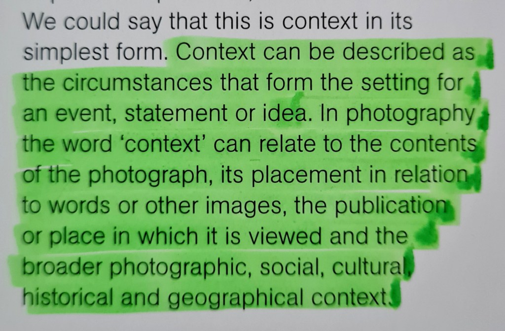 – external factors like, topicality; geographical placing, cultural understandings, experiences and expectation the audience bring to the photograph.