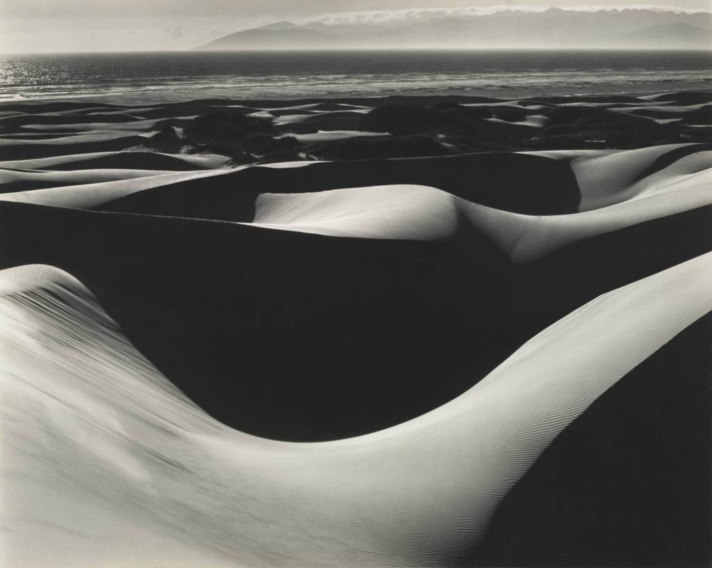 “Dunes, Oceano” (1936) – A striking black-and-white image of sand dunes with sensual, flowing curves, showcasing Weston’s masterful control of light, form, and texture.