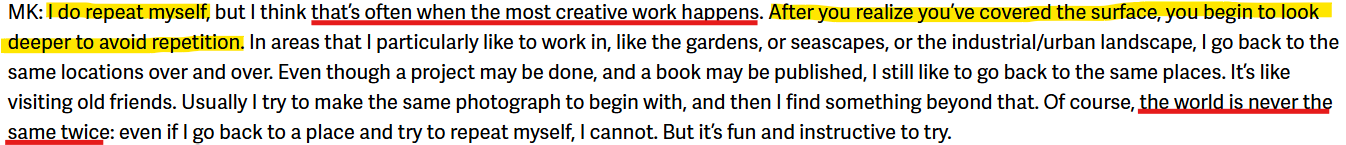 When I decided to write about MK, I didn’t want to just repeat what’s already out there in countless interviews and articles. Instead, I focused on pulling out the key takeaways—the bits that really resonated with me or felt especially relevant. Hopefully, this post gives you something valuable and saves you the time of digging through decades of interviews.