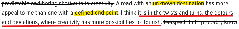 Spontaneity keeps the creative journey alive. Trust your intuition and embrace unpredictability.