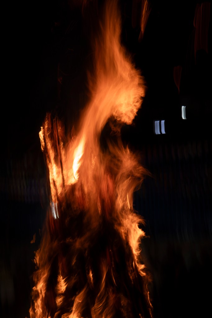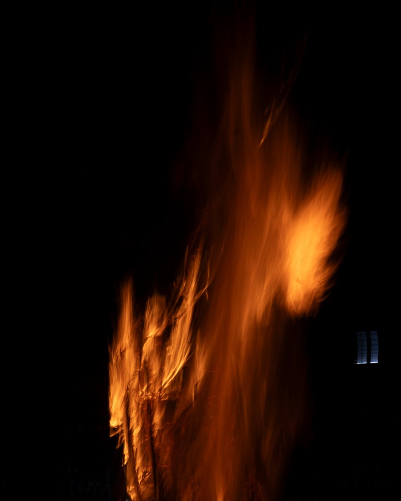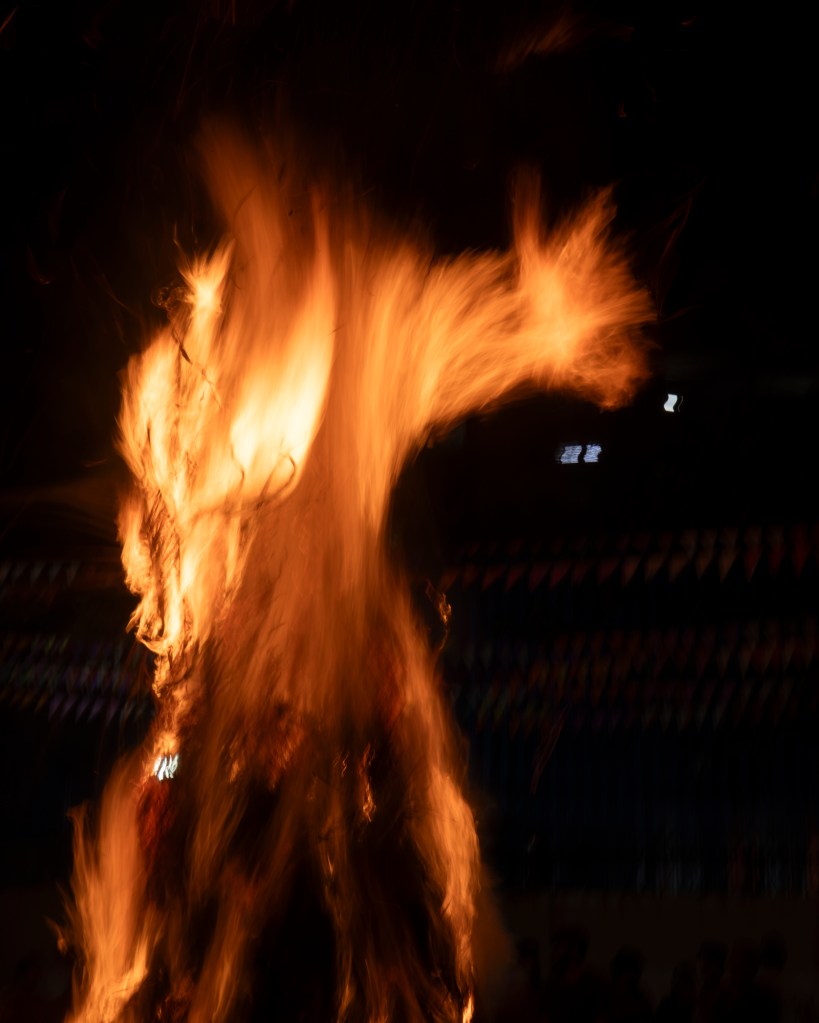 From the fountain rose a gigantic figure, cloaked in shadows yet burning from within, its skull aflame in a relentless head burn.