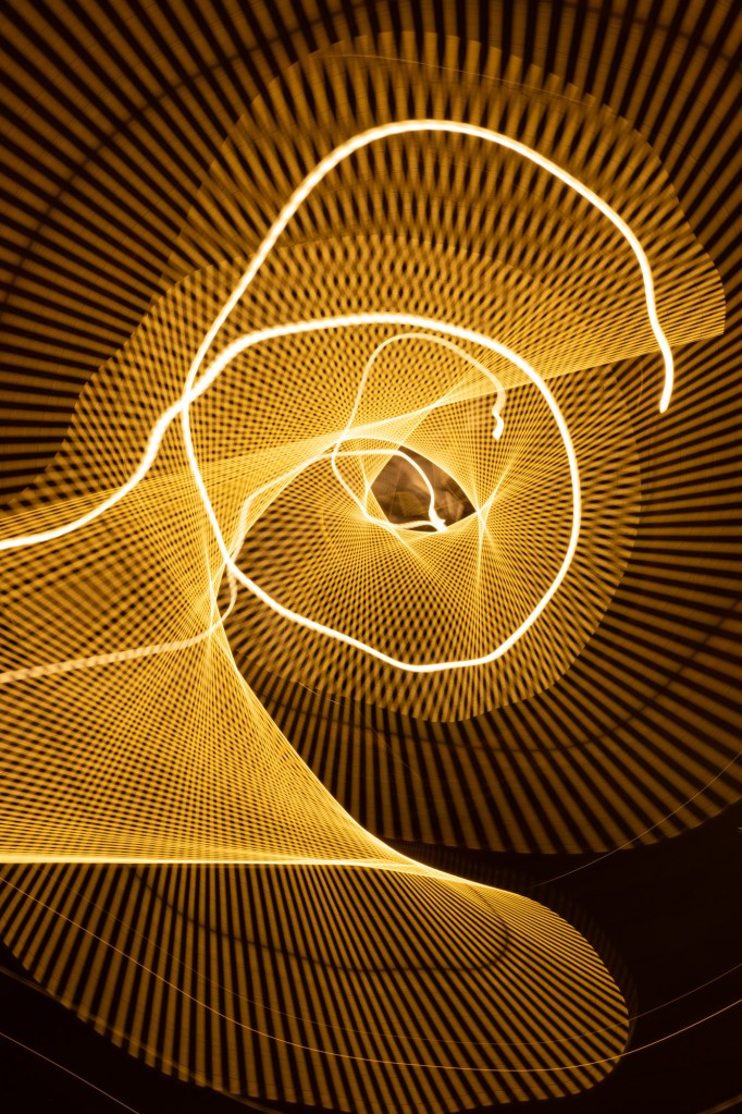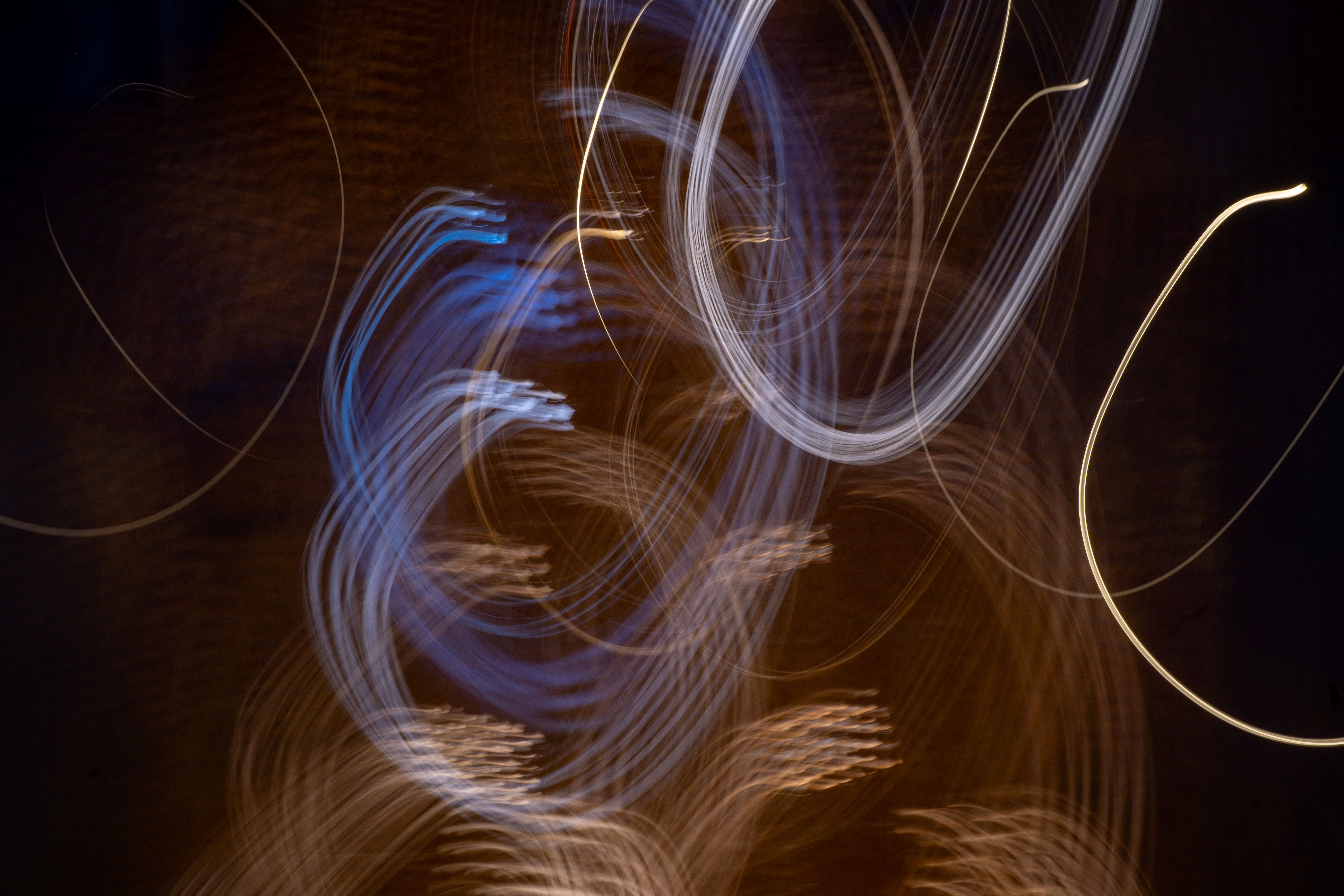 As the camera moves, light traces spirals and looping paths, forming layered patterns that feel both precise and fluid. Control and chance work together, much like those early drawings where repetition slowly shaped form. By replacing pen with motion and paper with time, the work treats light not as something that reveals, but as something that actively draws—turning a familiar childhood gesture into an abstract visual experience.