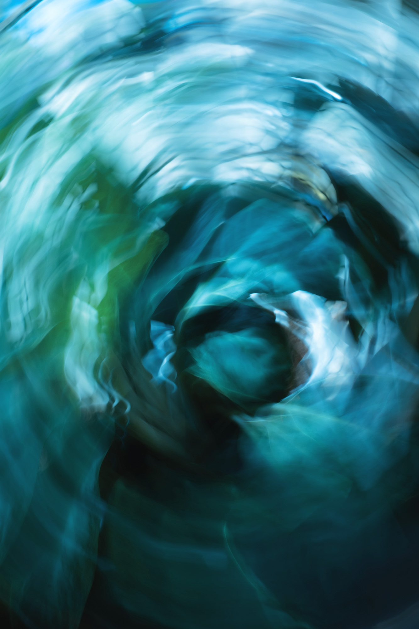 Subtle post-processing toward cooler tones introduces turquoise and sea-green hues, shifting the imagery from land toward an oceanic register. What emerges resembles a submerged force—suggestive of a tide or a gathering wave—where the natural world is felt rather than seen. By transforming the recognisable into the abstract, the work invites viewers to experience nature as energy, memory, and movement, challenging photography’s role as mere representation.